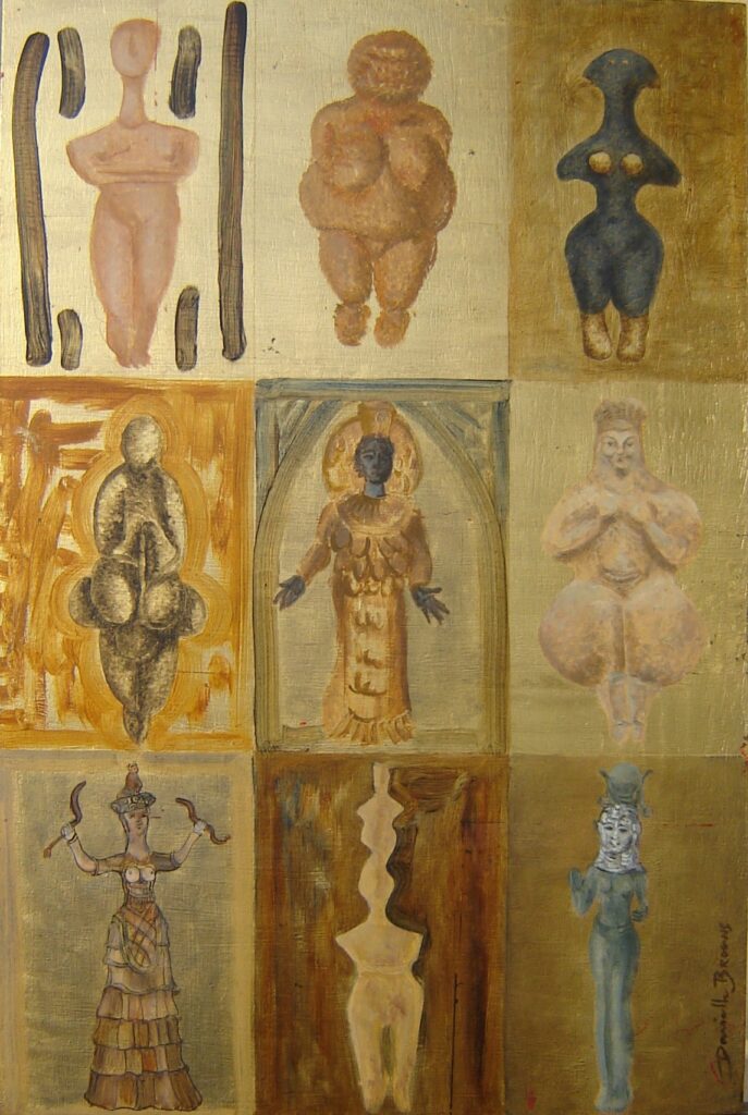 Godinnen uit de oudheid, olieverf en 23 krt bladgoud op ikoon-paneel 40 x 60 cm, € 750